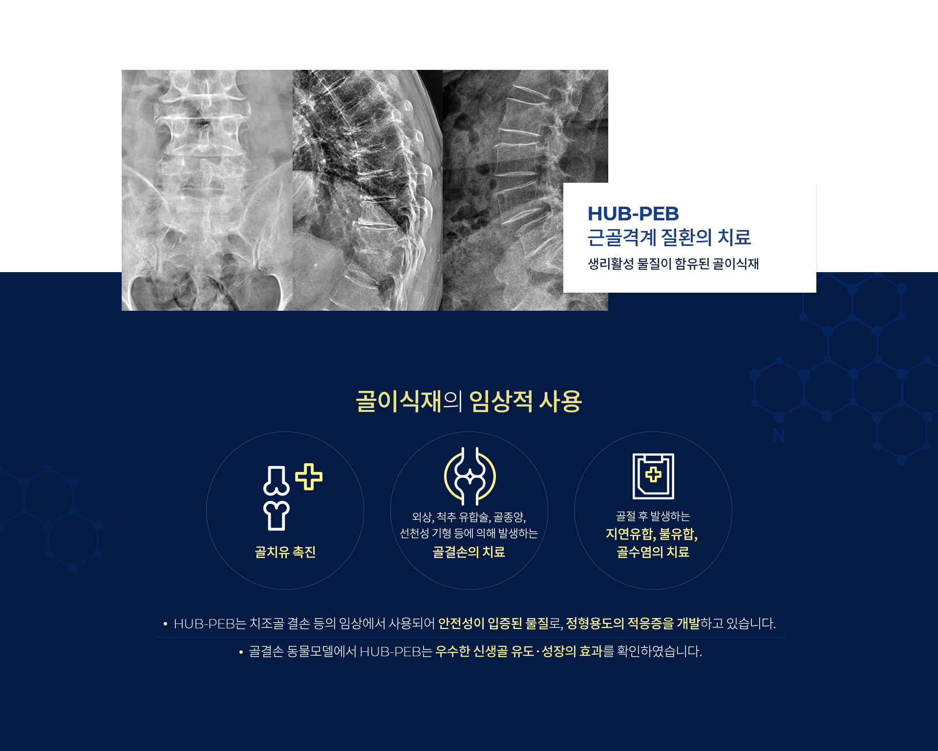 첨단 융복합의료제품 ㈜허브바이오텍은 근골격계 질환의 치료를 위해 첨단 융복합 의료제품을 개발하고 있습니다.